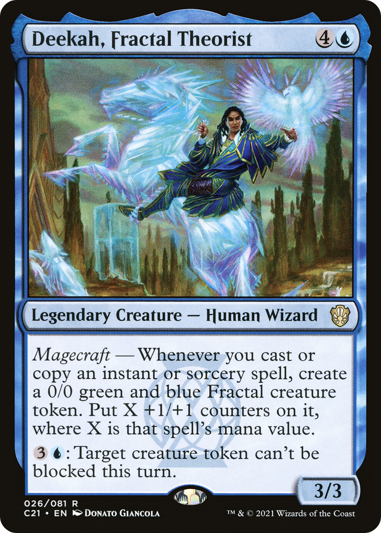 Magecraft — Whenever you cast or copy an instant or sorcery spell, create a 0/0 green and blue Fractal creature token. Put X +1/+1 counters on it, where X is that spell's mana value.