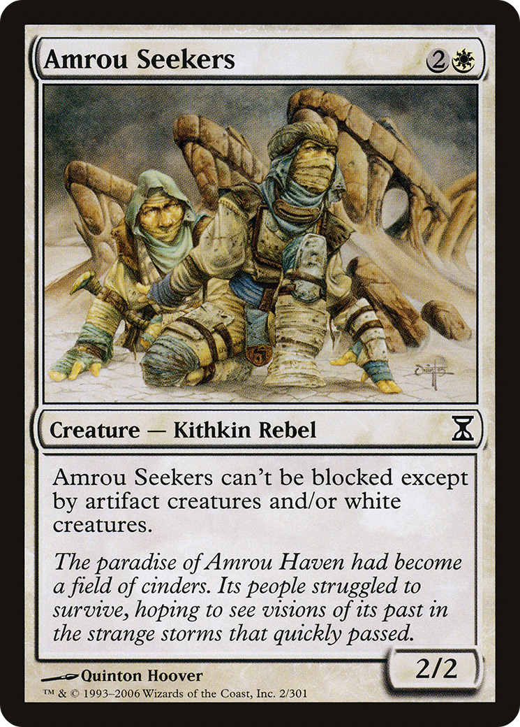 Amrou Seekers can't be blocked except by artifact creatures and/or white creatures.