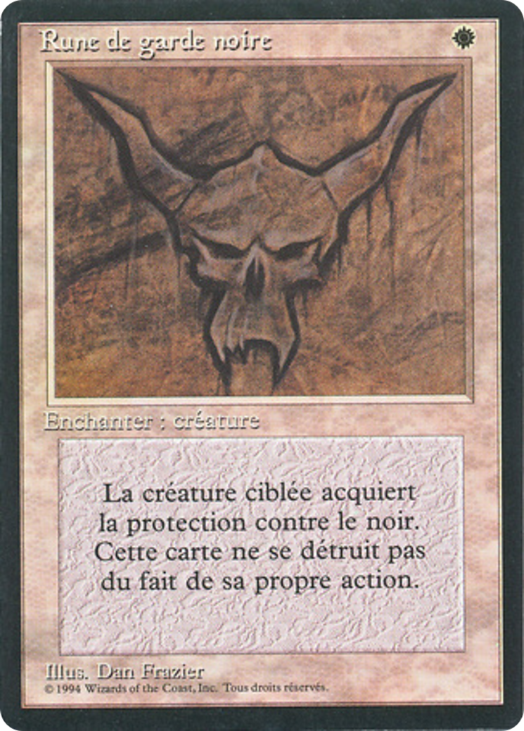 Enchanted creature has protection from black. This effect doesn't remove Black Ward.