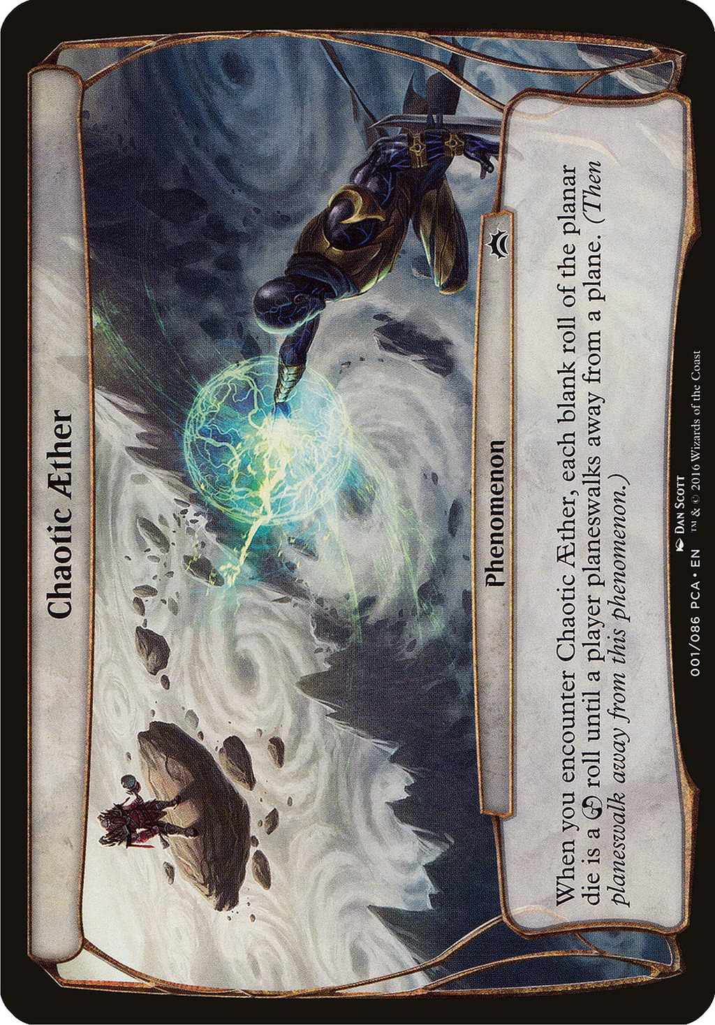 When you encounter Chaotic Aether, each blank roll of the planar die is a {CHAOS} roll until a player planeswalks away from a plane. (Then planeswalk away from this phenomenon.)