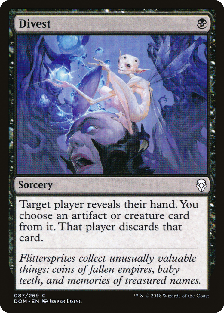 Target player reveals their hand. You choose an artifact or creature card from it. That player discards that card.