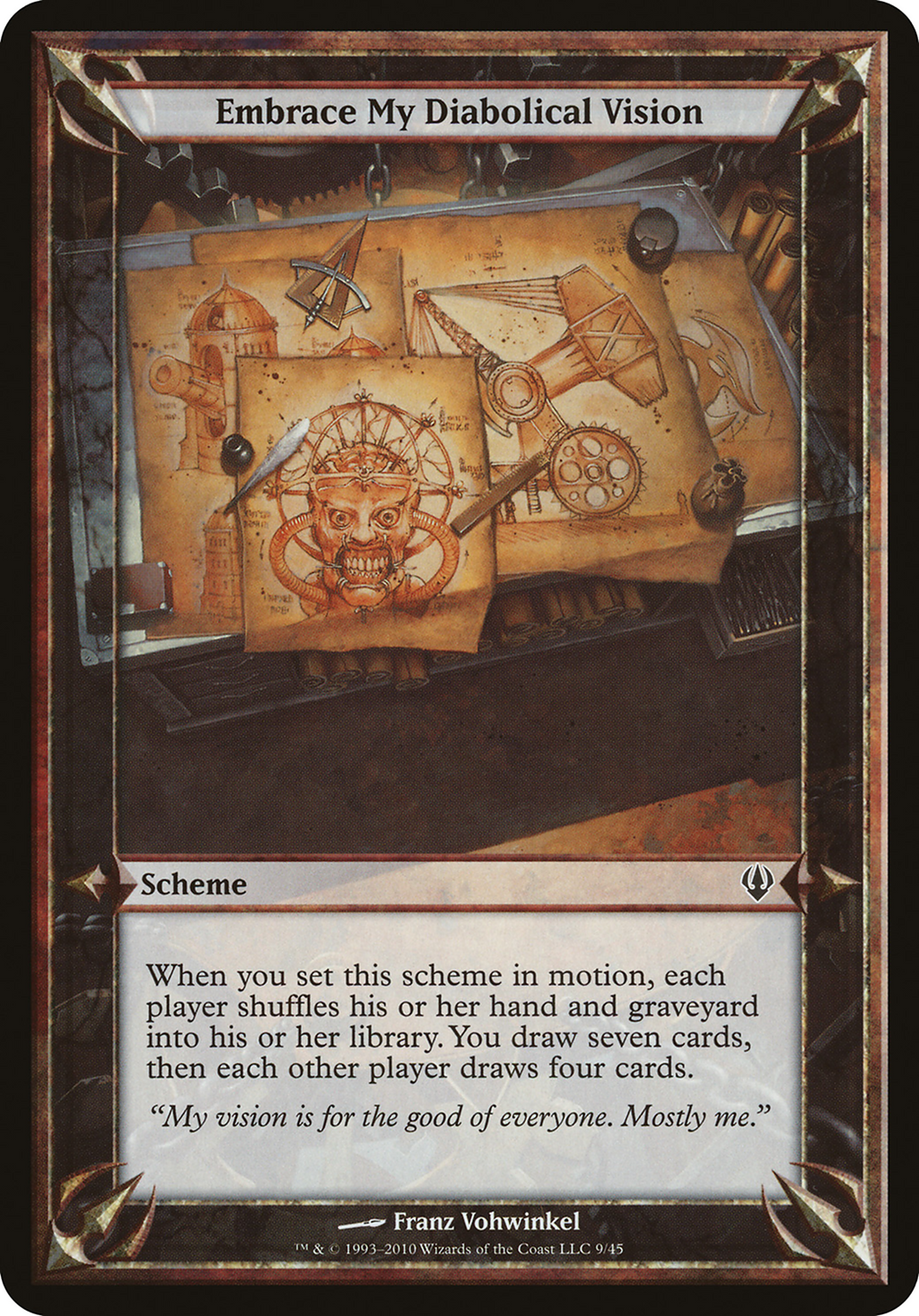 When you set this scheme in motion, each player shuffles their hand and graveyard into their library. You draw seven cards, then each other player draws four cards.