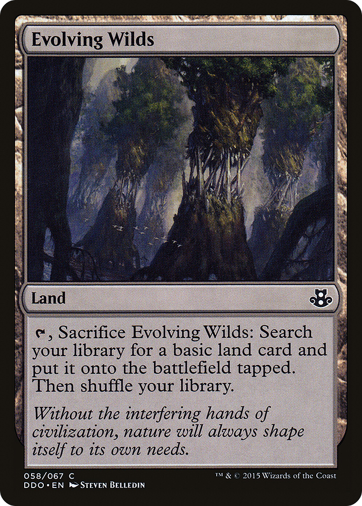 {T}, Sacrifice Evolving Wilds: Search your library for a basic land card, put it onto the battlefield tapped, then shuffle.