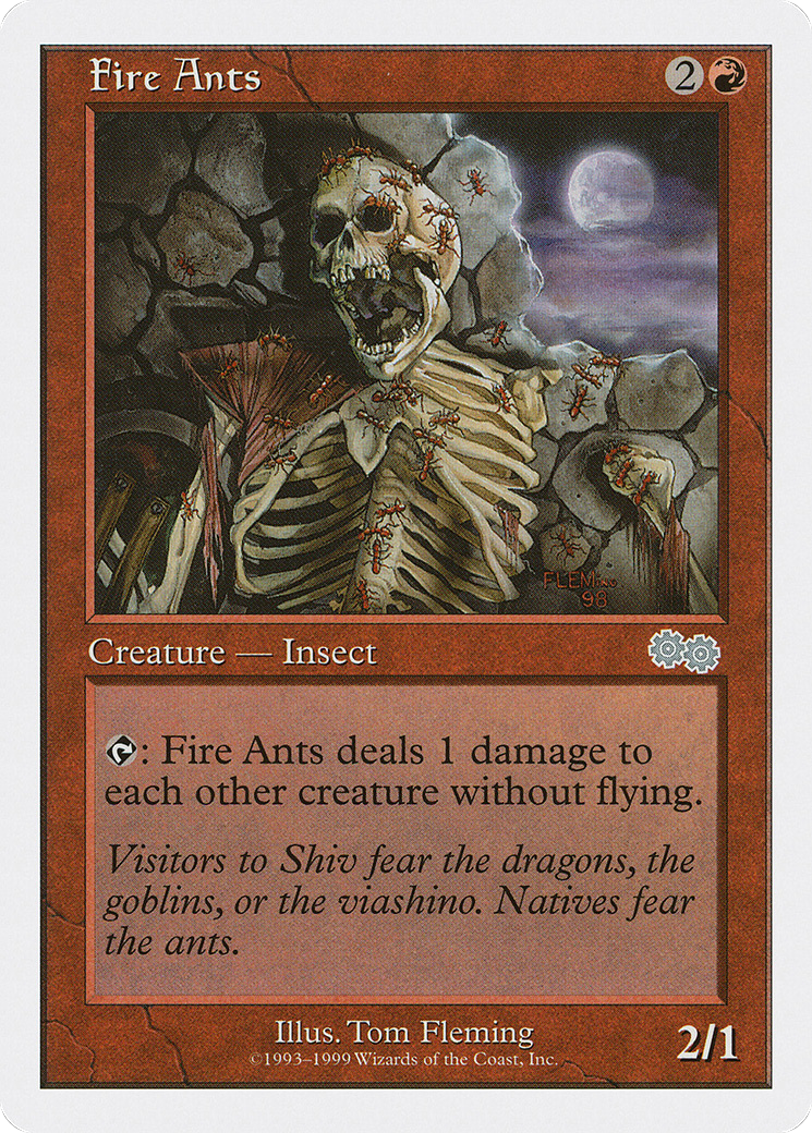 {T}: Fire Ants deals 1 damage to each other creature without flying.