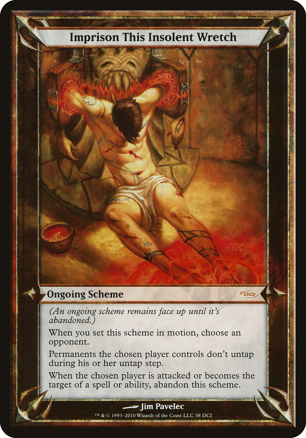 When the chosen player is attacked or becomes the target of a spell or ability, abandon this scheme.