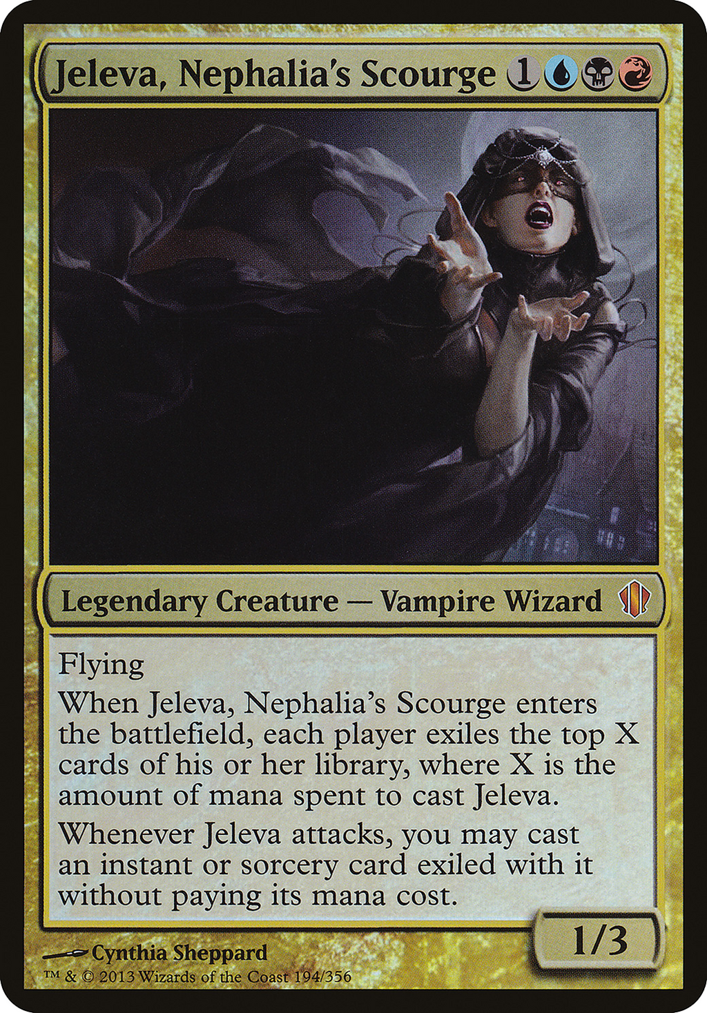 When Jeleva, Nephalia's Scourge enters the battlefield, each player exiles the top X cards of their library, where X is the amount of mana spent to cast Jeleva.