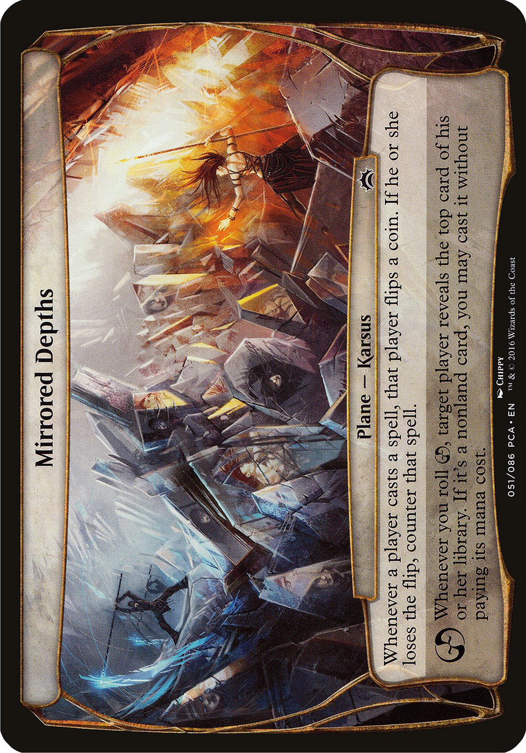 Whenever you roll {CHAOS}, target player reveals the top card of their library. If it's a nonland card, you may cast it without paying its mana cost.