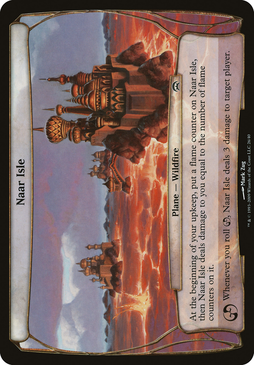 At the beginning of your upkeep, put a flame counter on Naar Isle, then Naar Isle deals damage to you equal to the number of flame counters on it.
