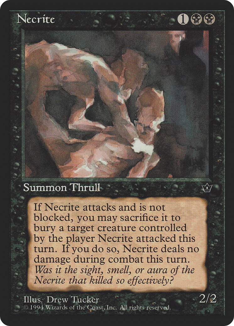 Whenever Necrite attacks and isn't blocked, you may sacrifice it. If you do, destroy target creature defending player controls. It can't be regenerated.
