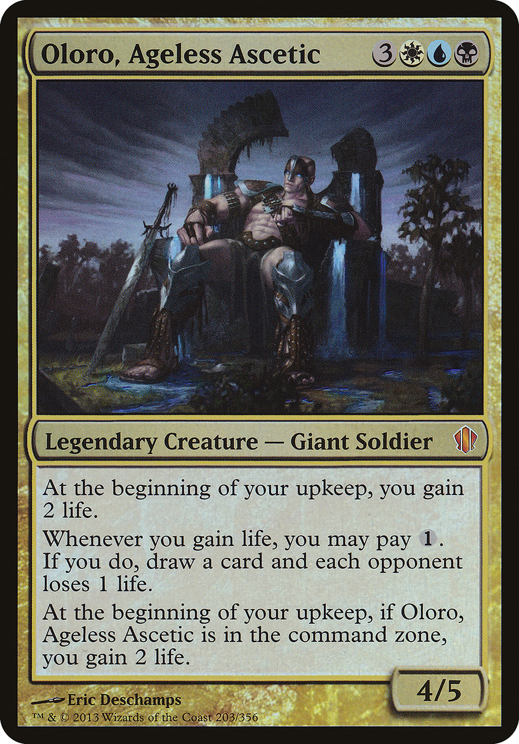 At the beginning of your upkeep, if Oloro, Ageless Ascetic is in the command zone, you gain 2 life.