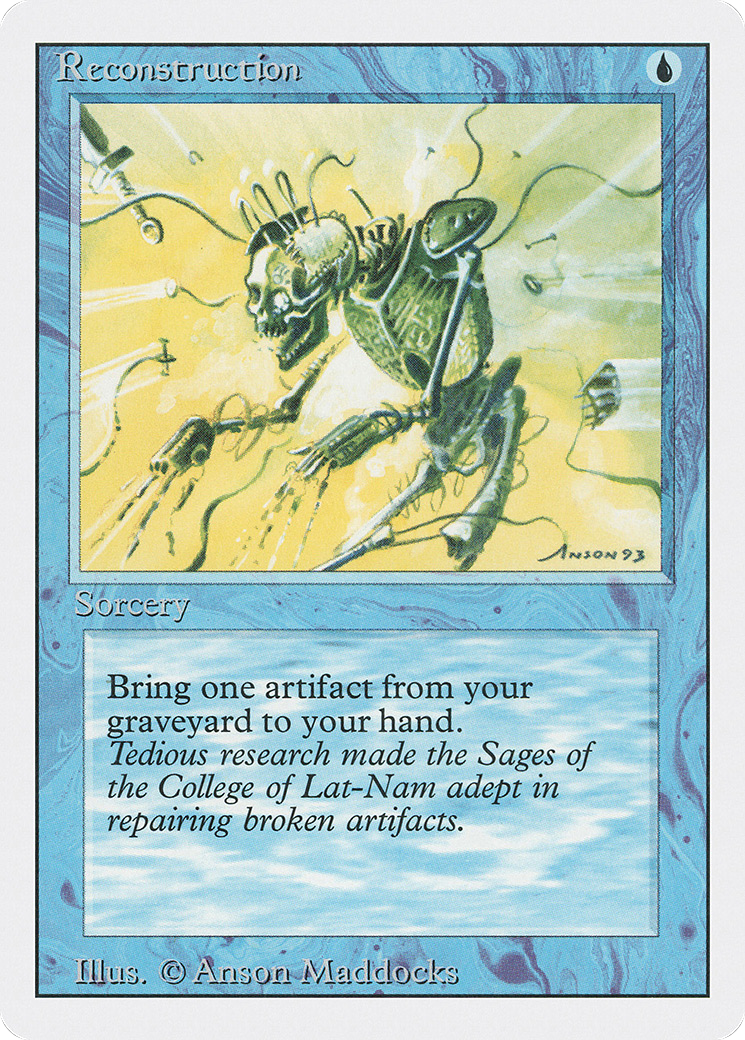 Return target artifact card from your graveyard to your hand.