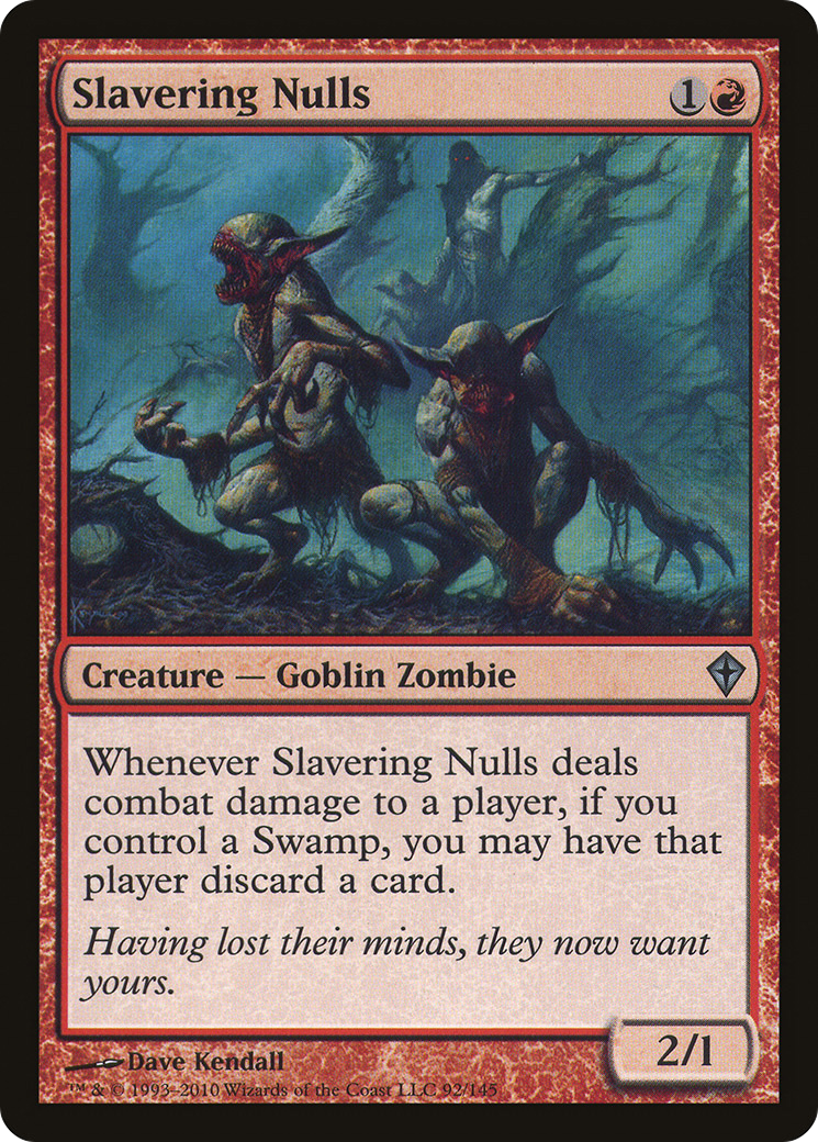 Whenever Slavering Nulls deals combat damage to a player, if you control a Swamp, you may have that player discard a card.