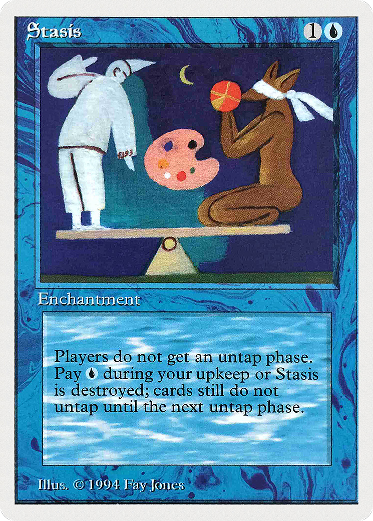 At the beginning of your upkeep, sacrifice Stasis unless you pay {U}.