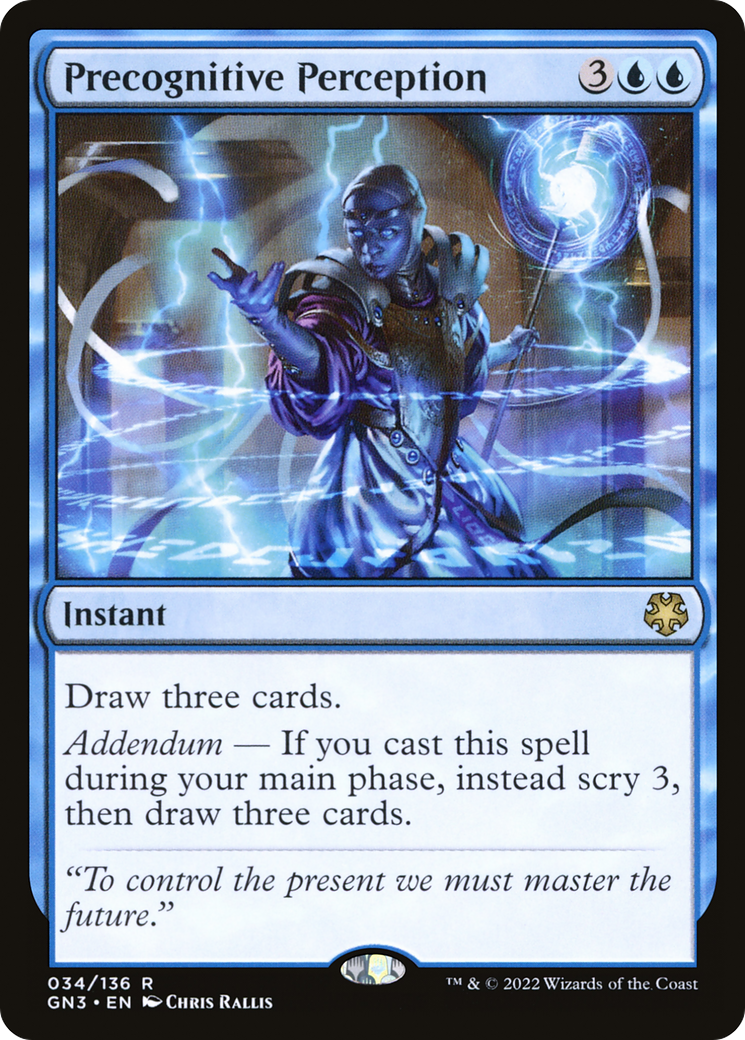 Addendum — If you cast this spell during your main phase, instead scry 3, then draw three cards.