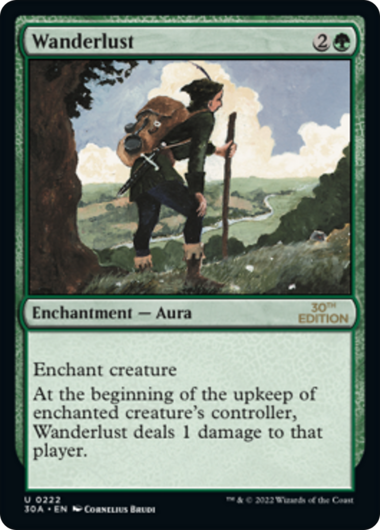 At the beginning of the upkeep of enchanted creature's controller, Wanderlust deals 1 damage to that player.