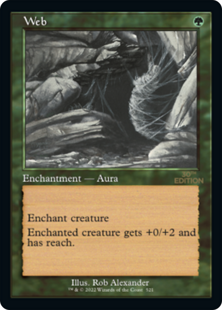 Enchanted creature gets +0/+2 and has reach. (It can block creatures with flying.)