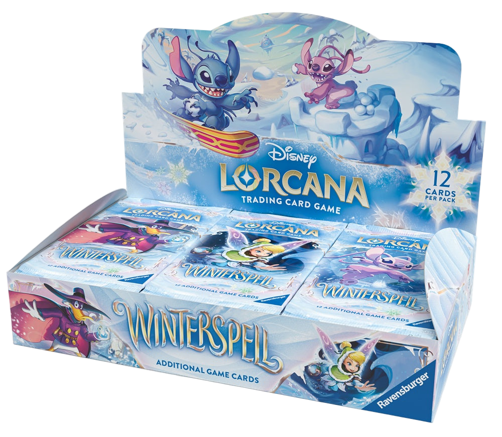 Booster packs contain twelve random cards from Disney Lorcana: Winterspell. A booster box contains 24 booster packs. Use booster packs to build and customize your deck with abilities and characters beyond those found in starter decks.